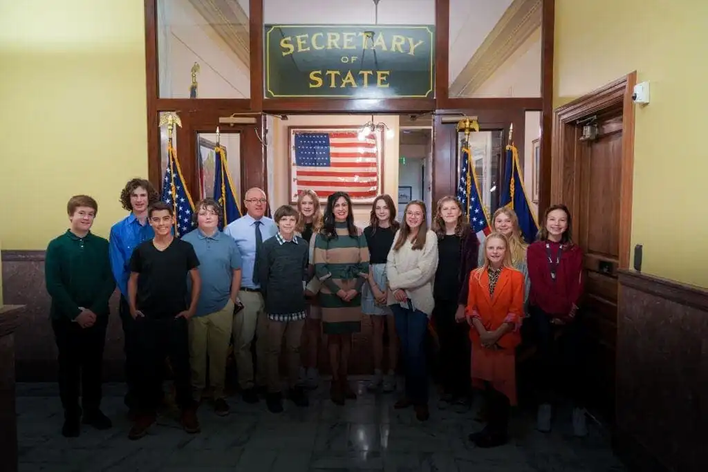 HELENA, Mont. — Twelve students from Roosevelt Middle School in Red Lodge visited the Office of the Secretary of State on Tuesday. The students, members of the school’s student council, visited with Secretary of State Christi Jacobsen about the responsibilities and roles the office holds in state government.